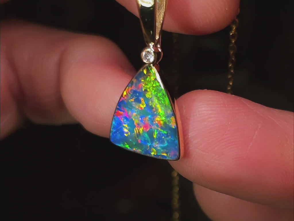 Chartres' Rare Super Gem Opal & Diamond Pendant 14k Gold 10.5ct P64