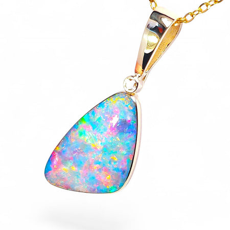 With time tested and proven quality methods, we have mined, created and cut this hypo-allergenic porcelain backed Coober Pedy (Dead Horse Gully field) doublet, then inlaid it in a solid 14k gold bezel and bail here at World Class Opal Australia, crafted for a lifetime of your enjoyment.