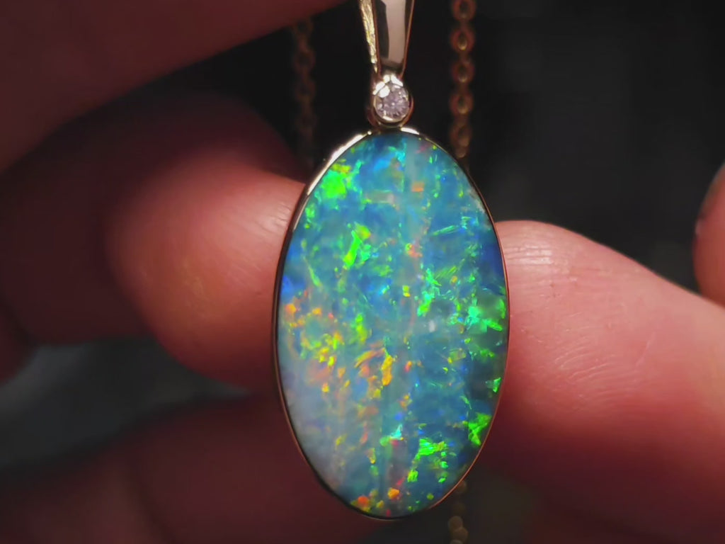 Alluvioni' Australian Opal & Diamond Pendant Rare Gem Gift 16ct O94