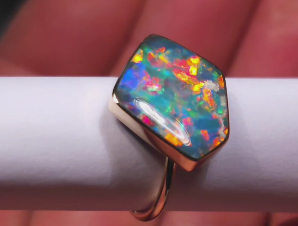 Eldfell' 14k Gold Australian Opal Ring 3.1g Free Re-Size P05