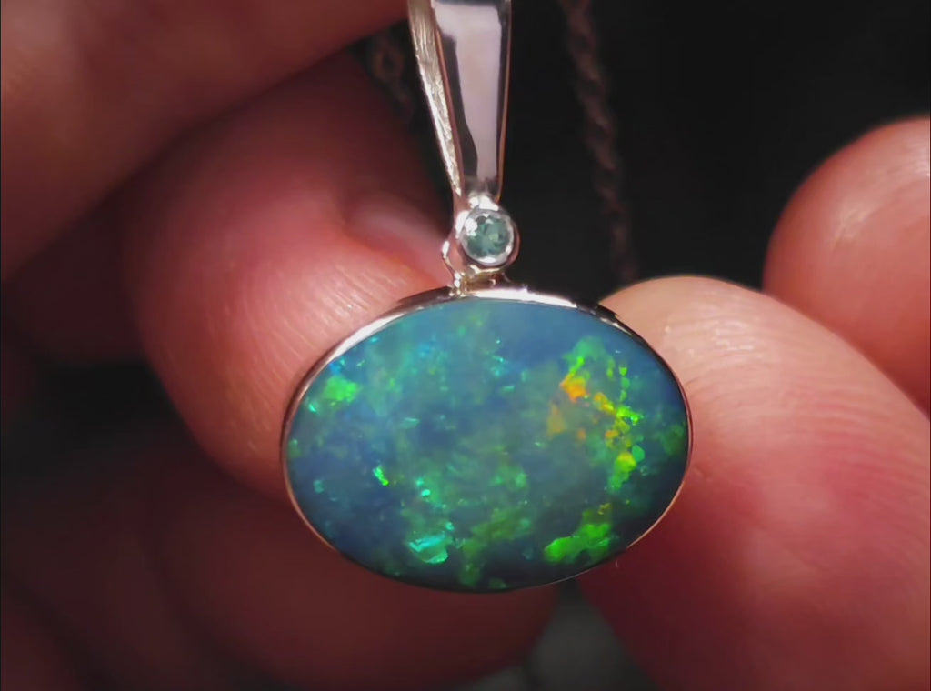 Emerald Orb' Australian Silver Opal Pendant Natural Emerald 12ct P03
