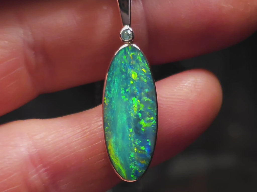 Emerald River' Australian Silver Opal Pendant Natural Emerald 14ct P01