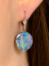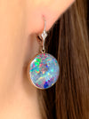DIMENSIONS: Each earring measures a large 17 mm round by around by 4 mm thick (opal in bezel only). An entire earring is about 34 mm in length, designed for your comfort and style.