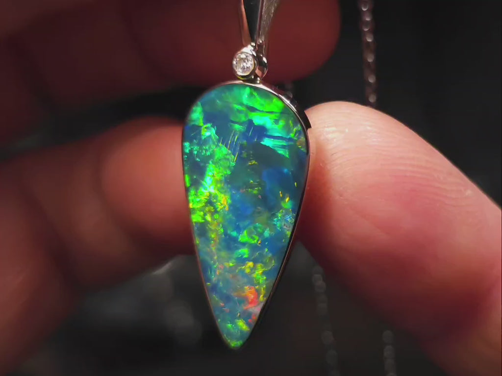 Fuego Raro' Rare Australian Opal & Diamond Pendant 14k White Gold 16.2ct O98