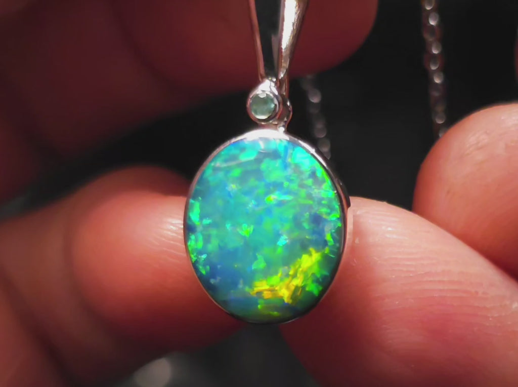Lumina' Australian Silver Opal Pendant Natural Emerald 11.4ct P02