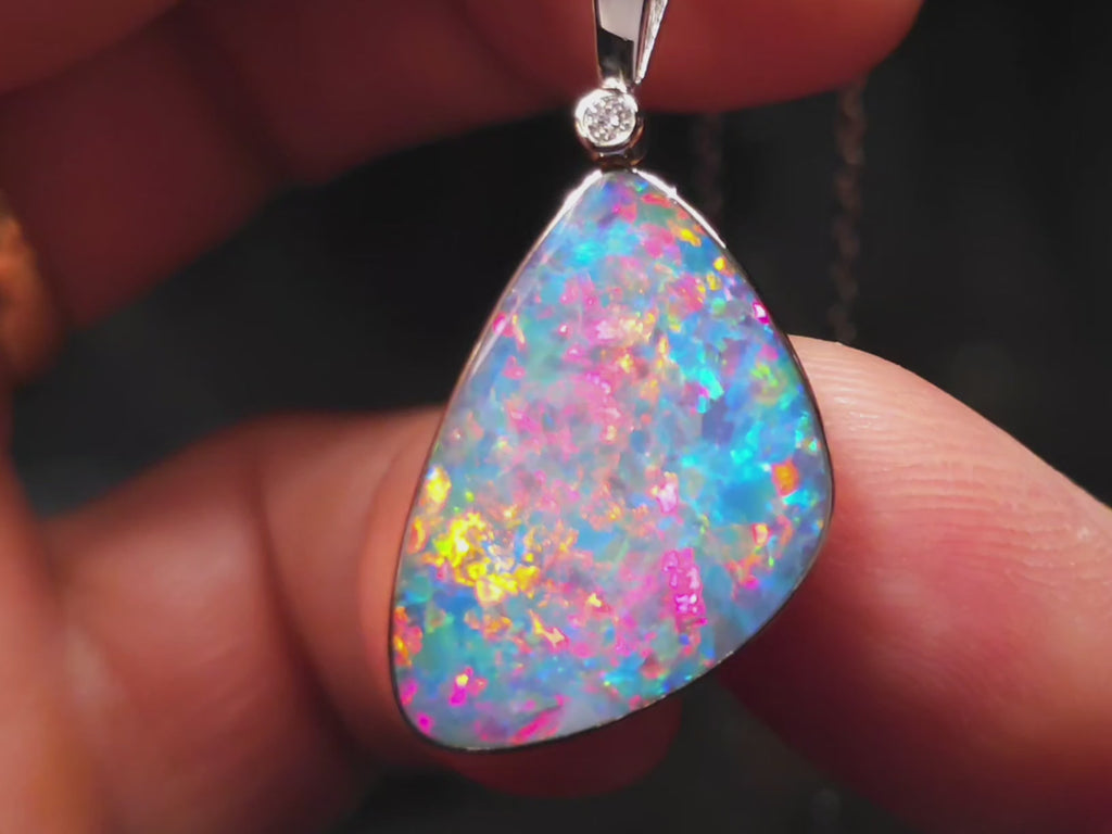 Magentique' Rare Large Opal & Diamond Pendant 14k White Gold 17ct O99
