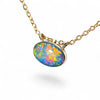 With time tested and proven quality methods, we have mined, created and cut this hypo-allergenic porcelain backed Coober Pedy (Dead Horse Gully field) doublet, then inlaid it in a solid 14k gold bezel and loops here at World Class Opal Australia, crafted for a lifetime of your enjoyment.