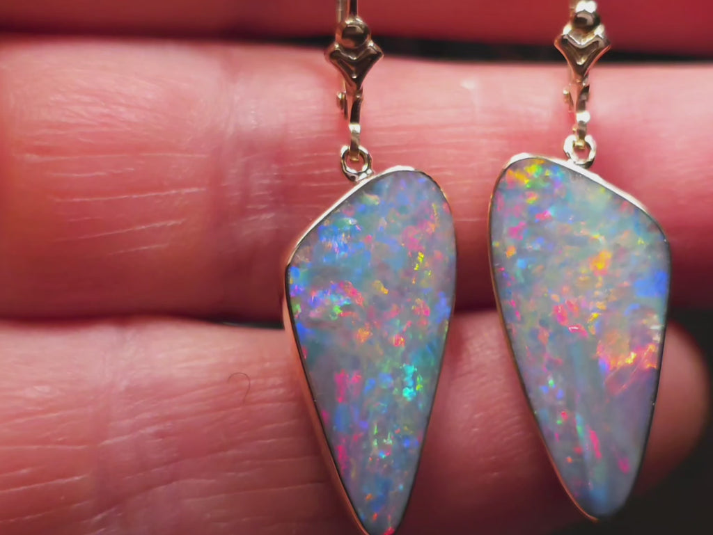 Dos Ranos' Genuine Australian Solid Gold Dangle Opal Earrings 19.5ct O86