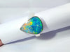 We mined this genuine natural Australian shell opal on the Dead Horse Gully opal field of Coober Pedy Australia. Using hypoallergenic vitreous porcelain backing with our strict quality controlled processes we create a genuine quality doublet. We have then set it here at World Class Opal Australia into a solid sterling silver bezel and band.