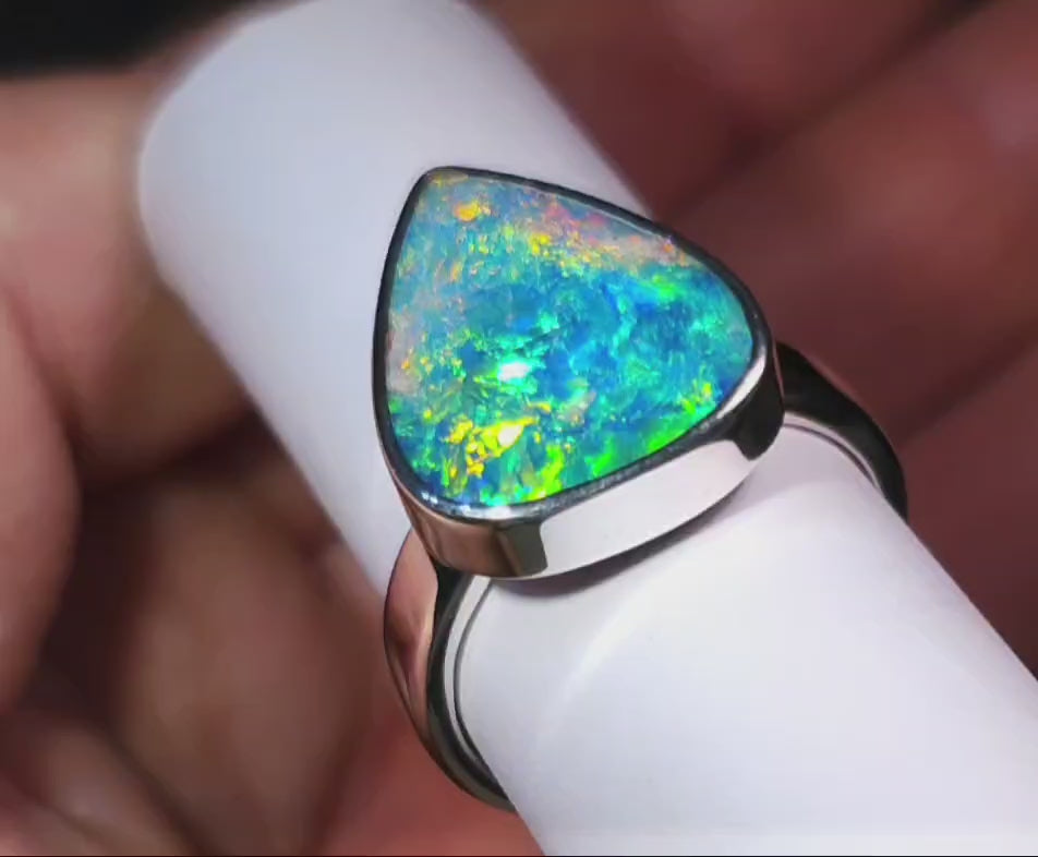 Mjolnir' Large Unisex Australian Opal Silver Ring 9g Free Re-Size Q25