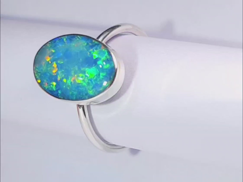 Pomar' Genuine Australian Opal Ring 925 Silver Free Re-Size P39