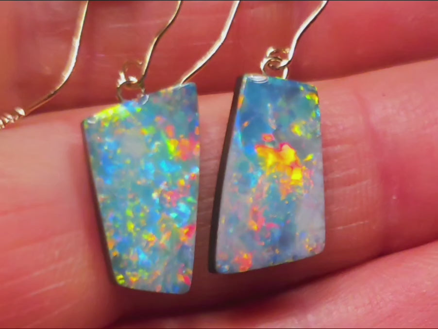 Avant Garde' Australian Opal Dangle Doublet Earrings 14k Gold 9.5ct P13